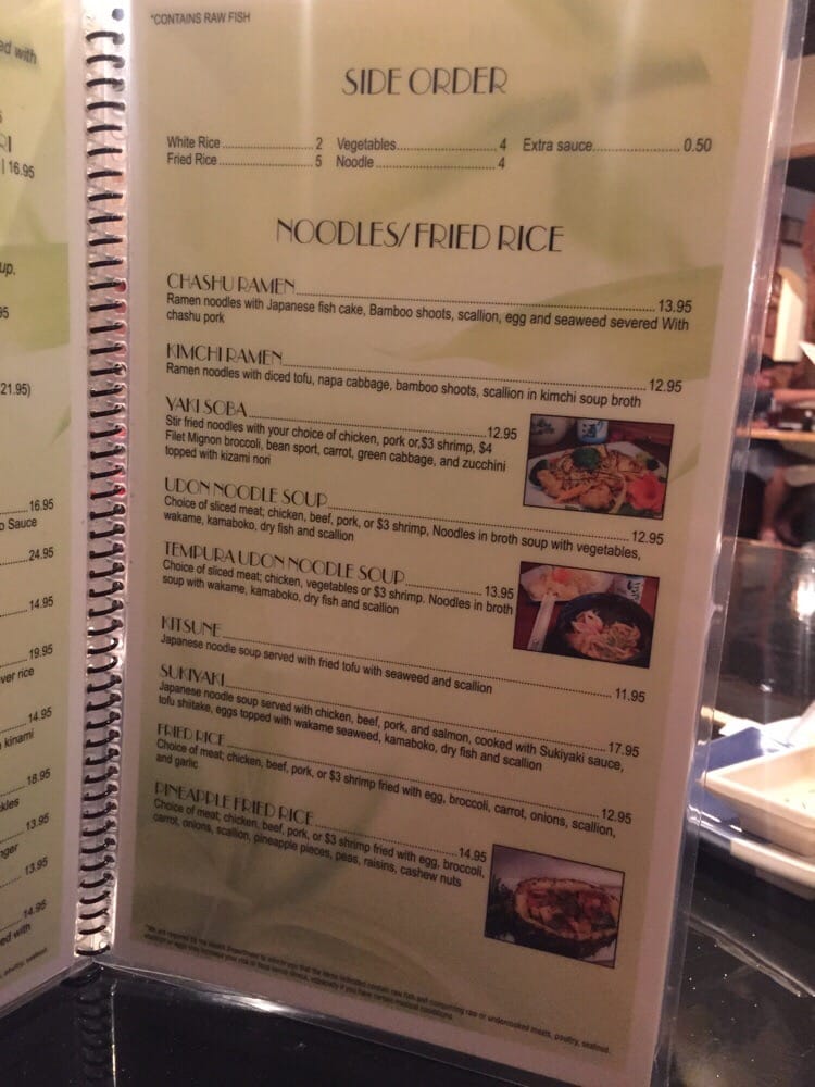 6 oz. filet. Served with miso soup, fresh ginger salad, fried rice, fried vegetables and fried noodles.